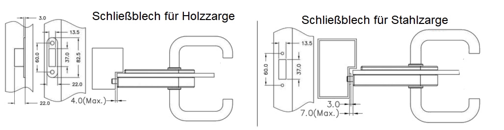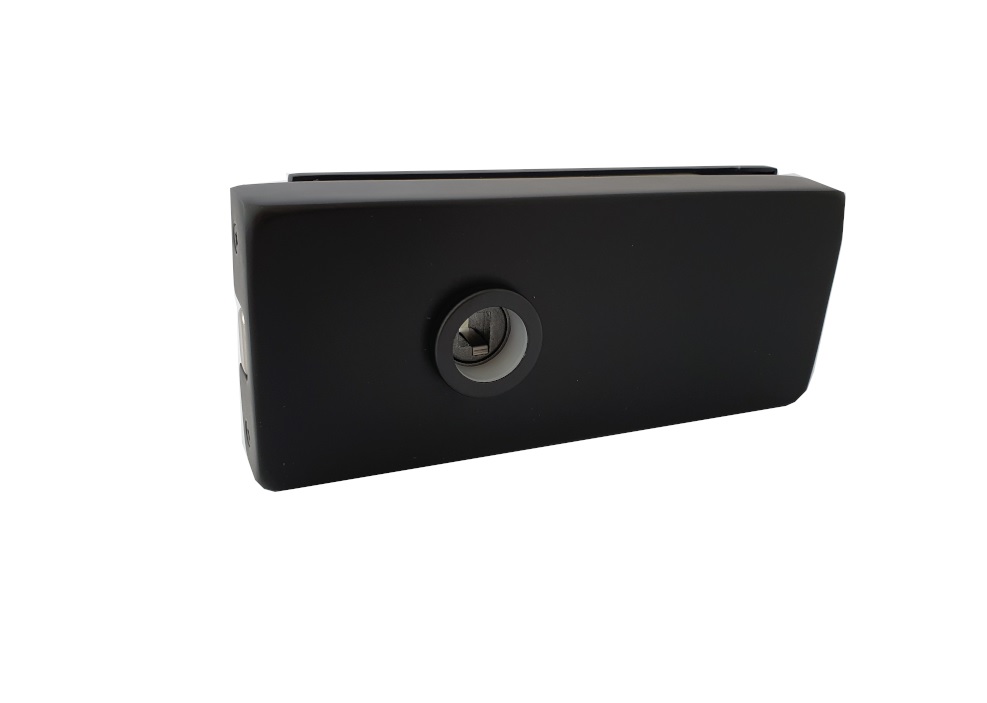 Oberfläche: Schwarz matt - Magnetschloss horizontal, Drücker vorne - für 8 - 12 mm Glas