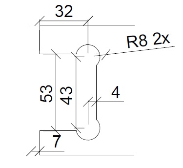 Shower support bar square, countersink